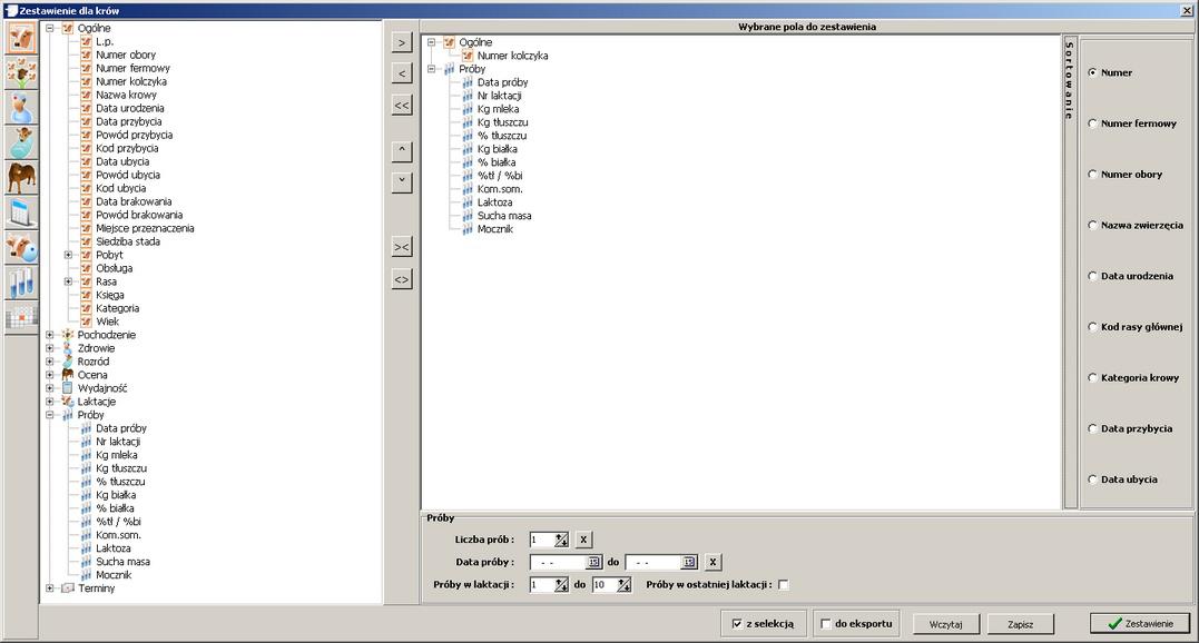 Funkcja przeznaczona jest do tworzenia zestawienia wybranych informacji dla krów. Umożliwia wyświetlenie,zapisanie a następnie wydruk zestawienia.